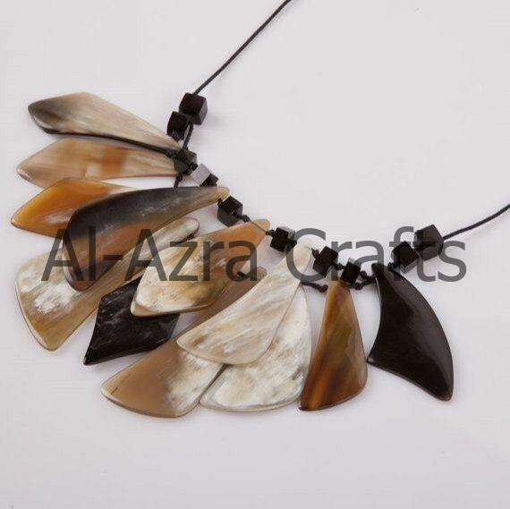 Alazracrafts offers handcrafted Buffalo Horn Necklaces made from natural and ethically sourced horn. Each necklace has a smooth finish and showcases the beautiful natural shades of buffalo horn, making it a unique fashion accessory. These necklaces are perfect for jewelry brands, gift shops, and craft resellers. Alazracrafts specializes in bulk orders and exports worldwide. Wholesale inquiries are welcome, and samples can be provided on request to check quality and craftsmanship before placing a larger order.